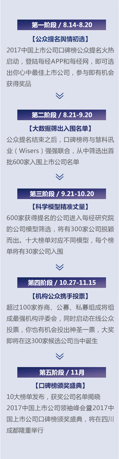 正本清源、守望價值,也一直是《每日經(jīng)濟新聞》連續(xù)七年舉辦中國上市公司口碑榜的初衷。2017年的盛會已經(jīng)正式開啟,在價值時代的感召之下,今年的獎項競選必將更為激烈,就讓我們靜候佳音。